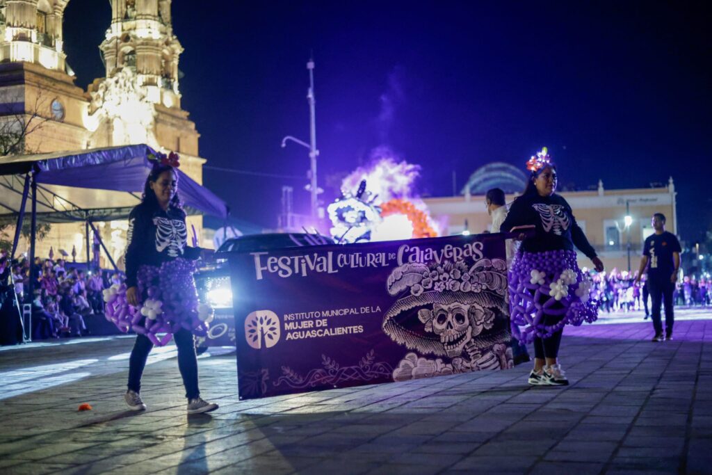El Instituto Municipal de la Mujer de Aguascalientes (IMMA) participó en el tradicional Desfile de Calaveras 2025 con una catrina monumental elaborada con globos, que representó un símbolo de fortaleza, unión y alegría, cualidades que distinguen a las mujeres de Aguascalientes.