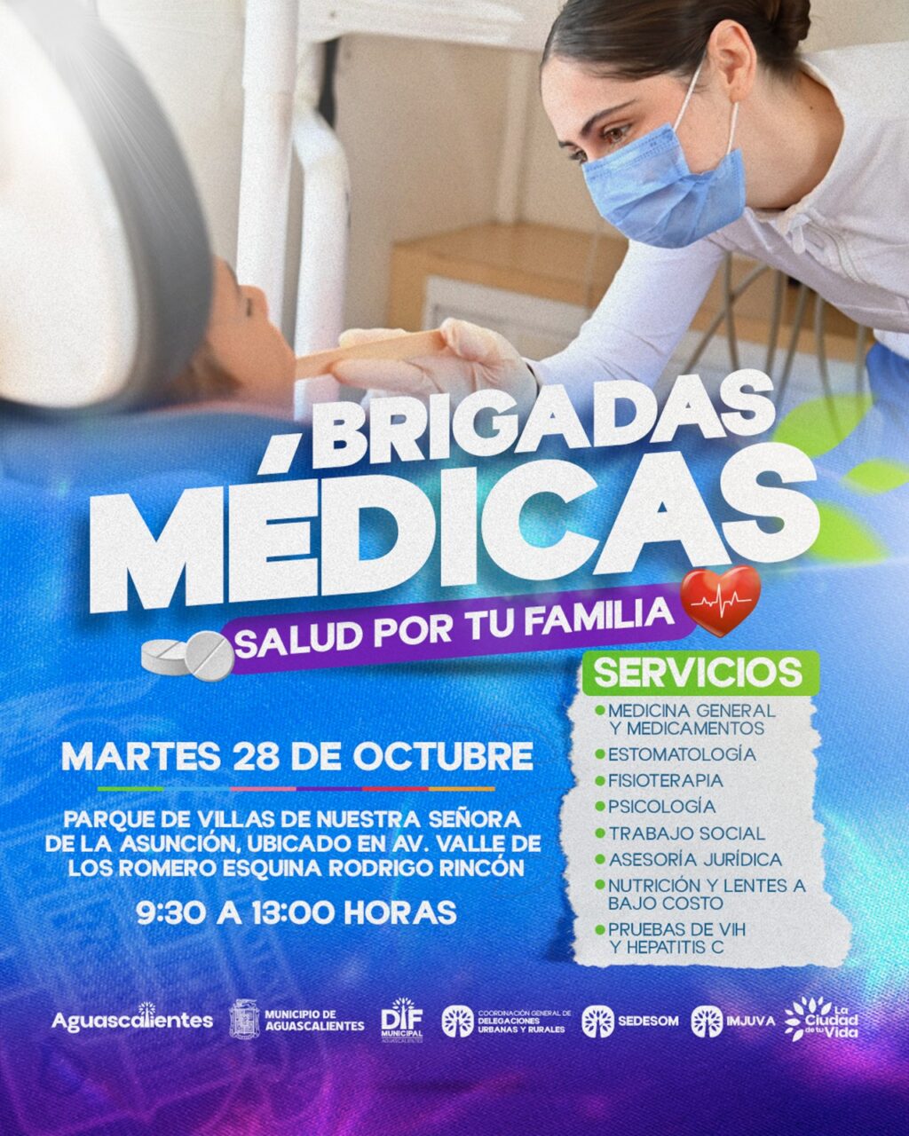 Durante las brigadas, los asistentes podrán acceder de manera gratuita a servicios de medicina general y medicamentos, estomatología, fisioterapia, psicología, trabajo social, asesoría jurídica, nutrición, lentes a bajo costo, así como pruebas rápidas de VIH y Hepatitis C.