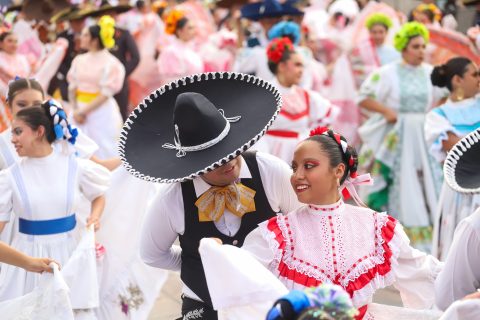 Con gran entusiasmo bailarines de compañías y grupos de danza folklórica que atendieron la convocatoria del Instituto Municipal Aguascalentense para la Cultura (IMAC), inundaron de color la Plaza de la