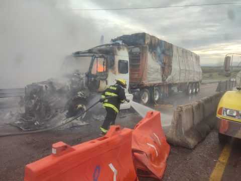 •Más de 30 toneladas de cartón quedaron consumidas por el fuego en el libramiento sur. un tractorcamión marca International de la empresa con razón social "Grupo Remex" quedó completamente en