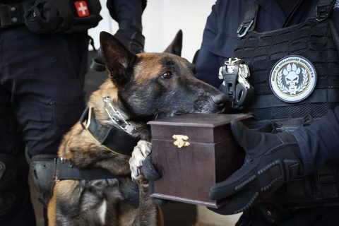 Con un emotivo homenaje, perritos policías y sus entrenadores, despidieron a Matt quien formó parte de la valiente labor de combate a la delincuencia en la Secretaría de Seguridad Pública