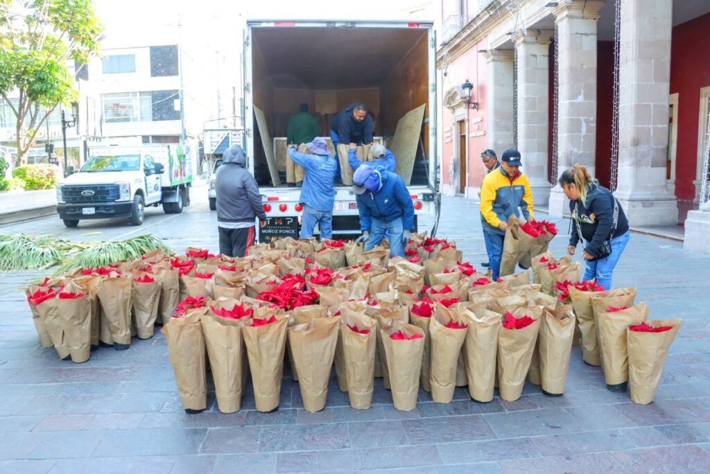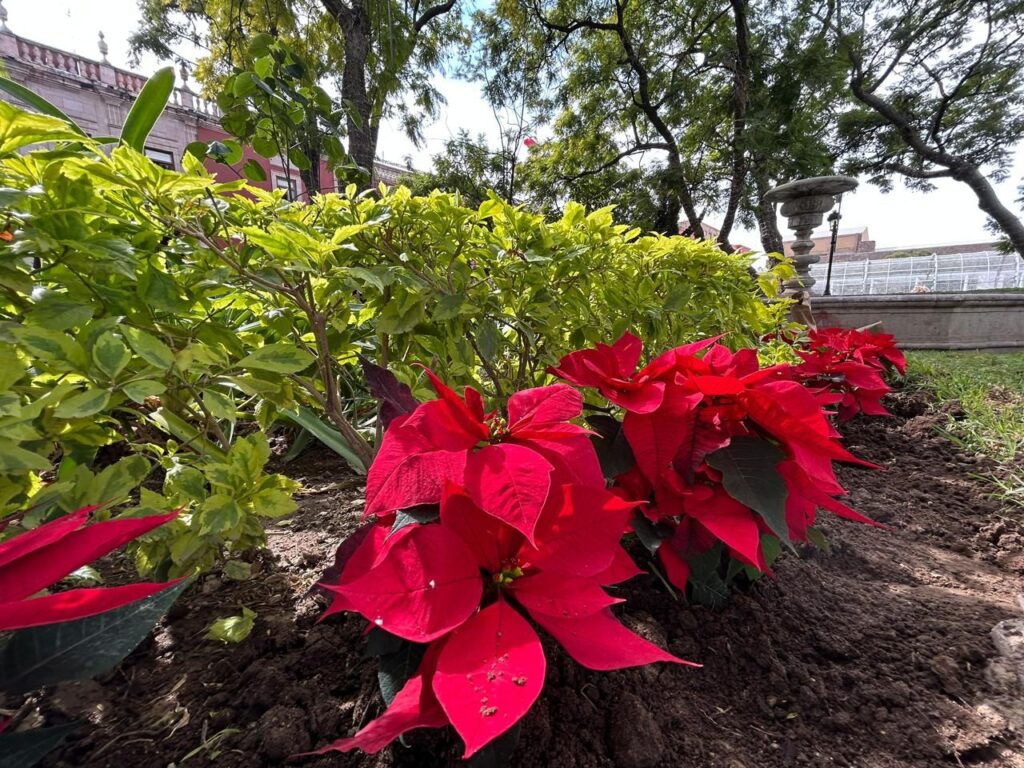 El Municipio de Aguascalientes, a través de la Secretaría de Servicios Públicos, informa que para la temporada navideña 2025 se colocaron más de 6 mil plantas de nochebuena en jardineras y camellones del primer cuadro de la ciudad. Esta acción forma parte del programa de embellecimiento y mantenimiento integral del Centro Histórico, con el propósito de ofrecer a las familias un entorno agradable, cálido y acorde con las festividades decembrinas.