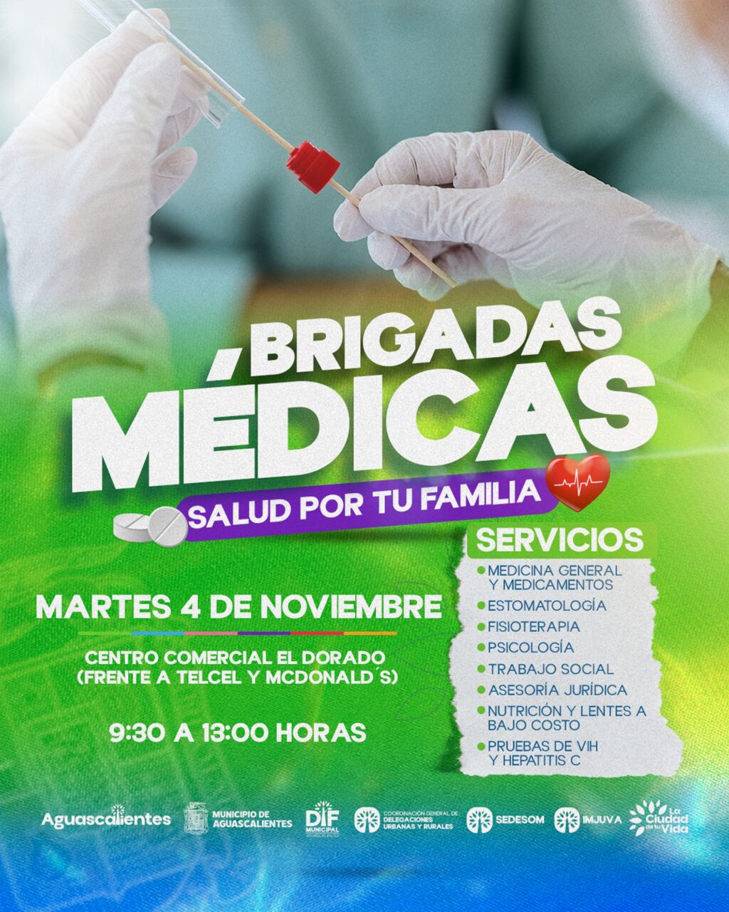 Durante estas jornadas, las familias podrán acceder a atención médica general y medicamentos, así como a servicios de psicología, fisioterapia, trabajo social, asesoría jurídica, nutrición y lentes a bajo costo. Además, se ofrecerán pruebas rápidas de VIH y Hepatitis C.