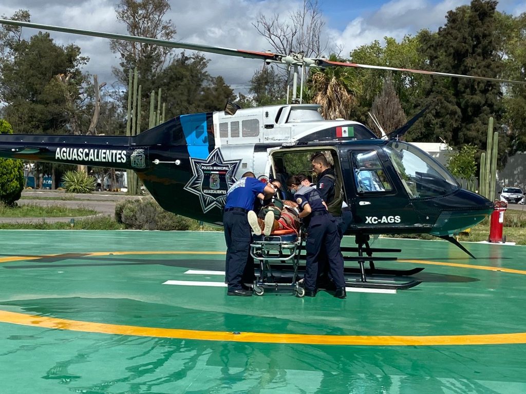 Por lo anterior, al tener conocimiento el Secretario de Seguridad Pública Municipal de Aguascalientes, Antonio Martínez Romo autorizó el apoyo aeromédico, despegando el helicóptero “Halcón Uno” del helipuerto Bicentenario con destino al lugar del accidente.